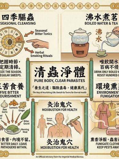 In historical and wealthy Chinese lineages, particularly those following Daoist or Traditional Chinese Medicine (TCM) principles, parasites were not viewed as simple infections but as Gu—a term referring to "hidden pathogens" or "deliberate toxins" that could rot the body and mind from within.